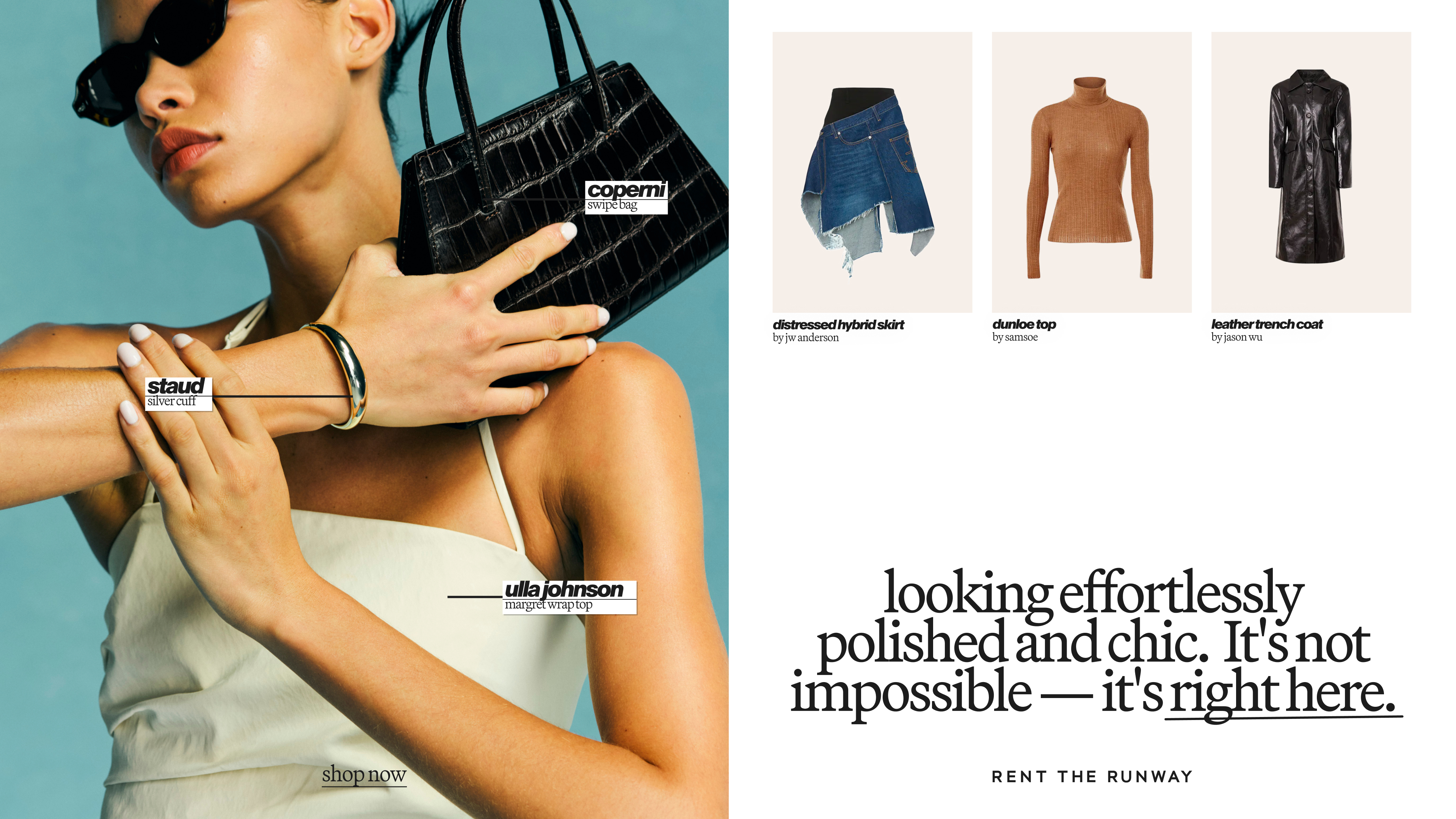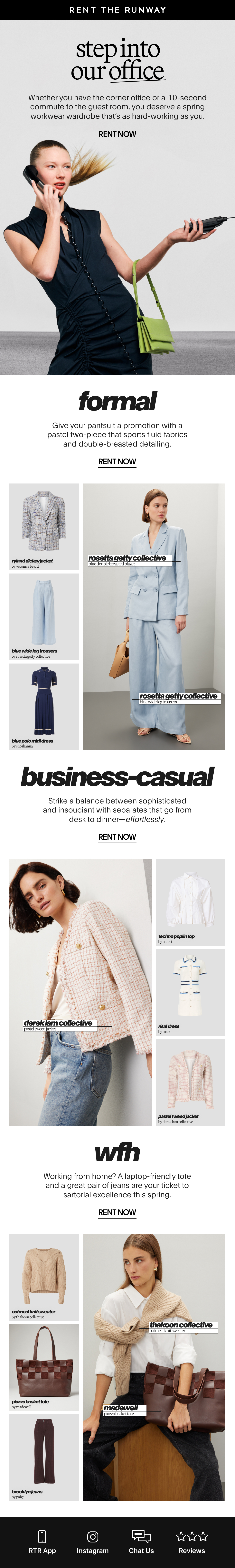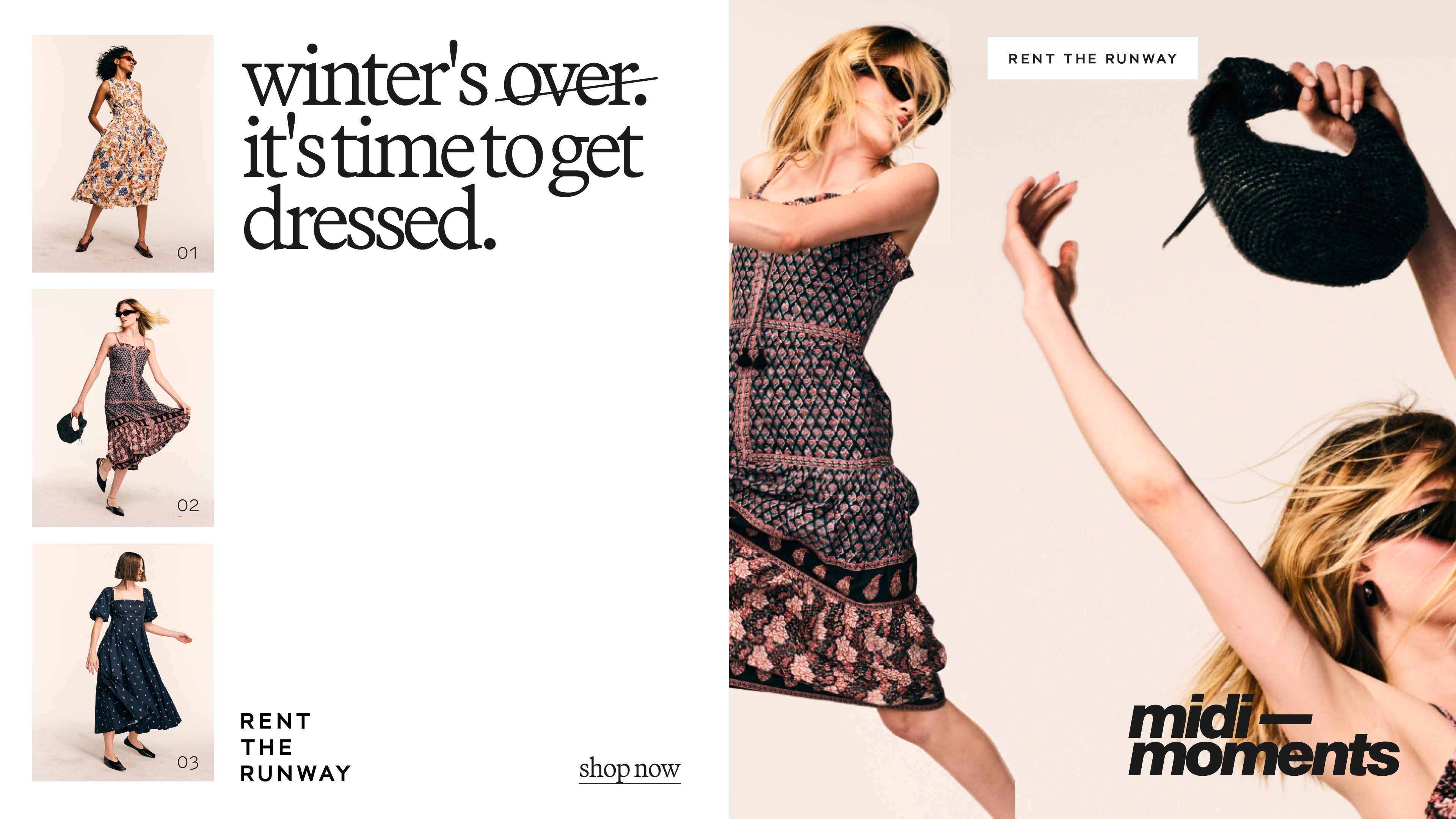 Spring 2024 at Rent the Runway marked a fresh start, inspiring a vibrant brand refresh. The challenge was to infuse the brand with more playfulness and energy while maintaining an elevated, sophisticated feel.